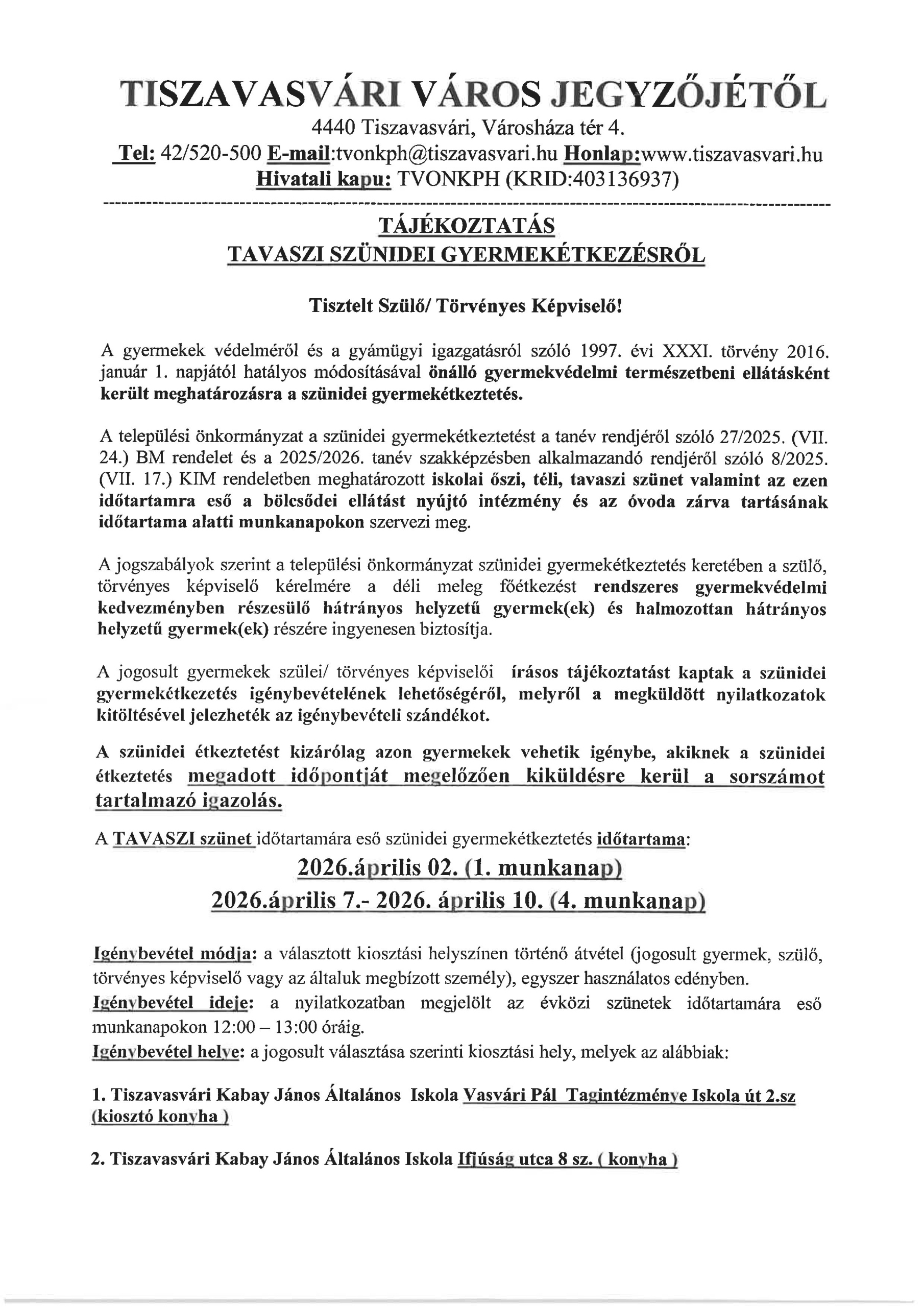 Közérdekű információk