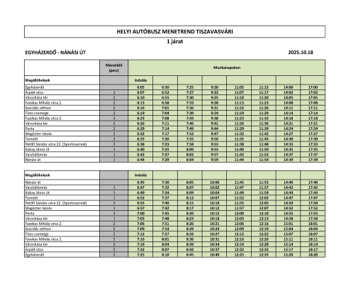 Vasvári Tisza2025-10-16 15:43:482025-10-16 15:43:51Helyi buszjárat 2025.10.18 -i szombati menetrend