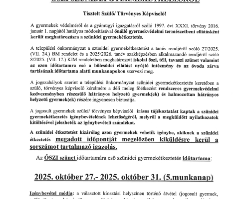 Vasvári Tisza2025-10-22 12:32:222025-10-22 12:32:25Tájékoztatás Őszi szünidei gyermekétkezésről