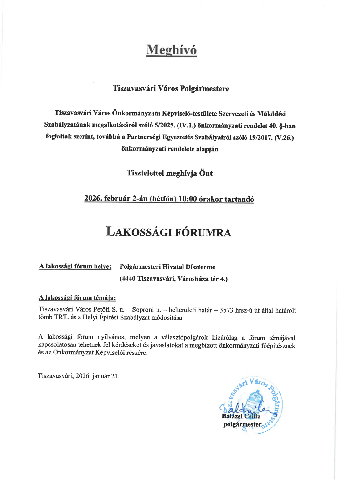 Központi elektronikus levélcím: tvonkph@tiszavasvari.hu