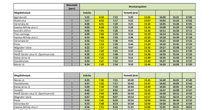 Helyi buszjárat menetrend 2026.01.10 Szombat