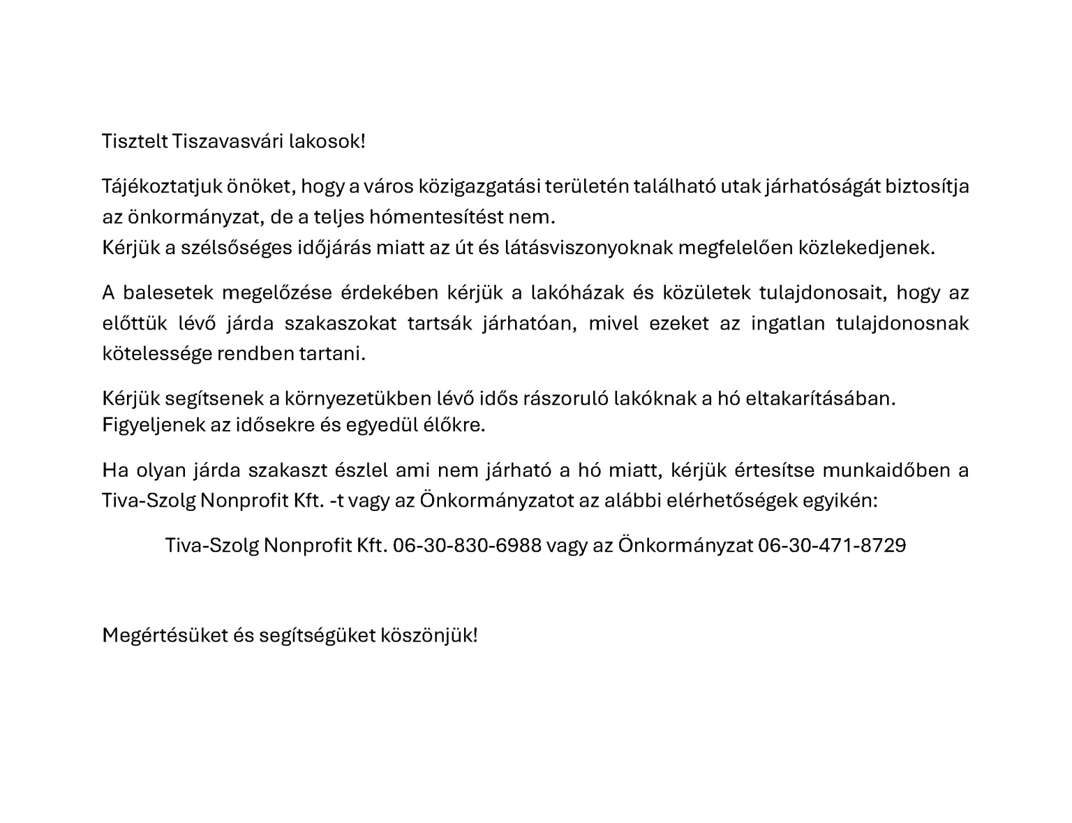 Központi elektronikus levélcím: tvonkph@tiszavasvari.hu