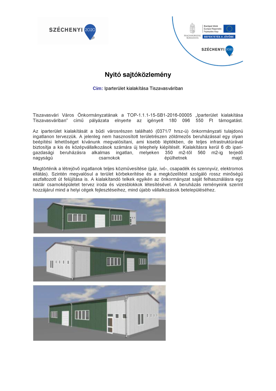 TOP-1.1.1-15-SB1-2016-00005 Iparterület kialakítása Tiszavasváriban