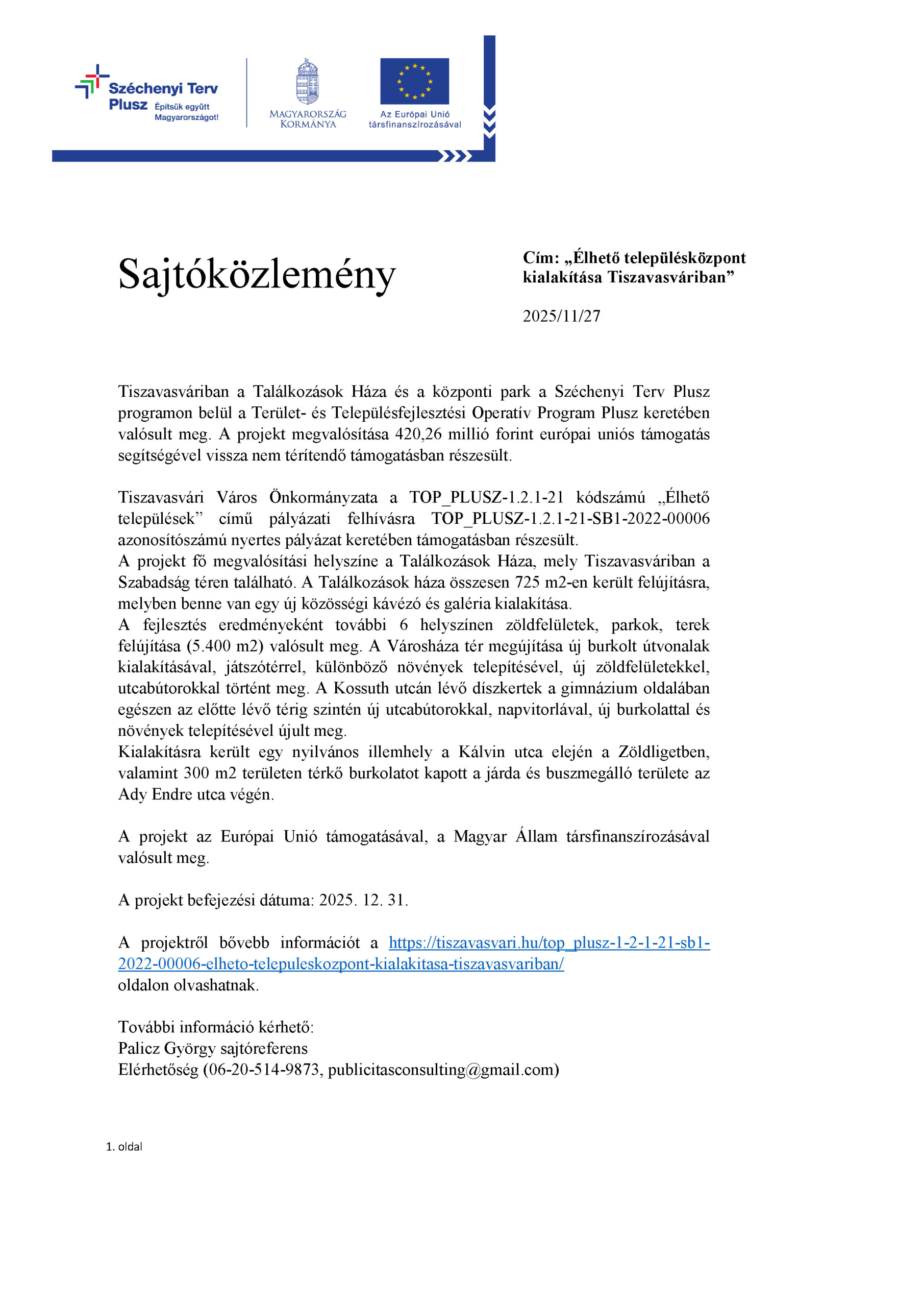 https://www.szon.hu/pr/2025/12/befejezodott-tiszavasvari-varoskozpontjanak-atfogo-fejlesztese