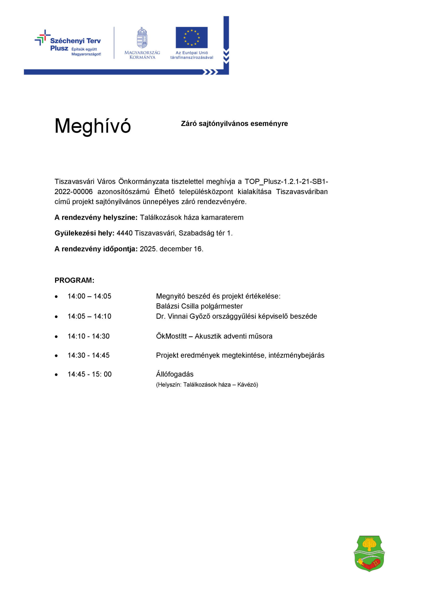 Kedvezményezett neve: Tiszavasvári Város Önkormányzata
