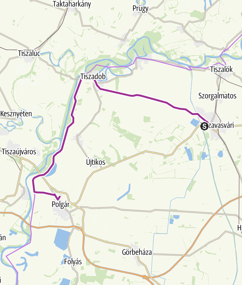 • A gáthoz érve balra kanyarodunk és a töltésen tekerünk 16 kilométert, ahol balra kanyarodunk a Tiszaúti tanyasorra.